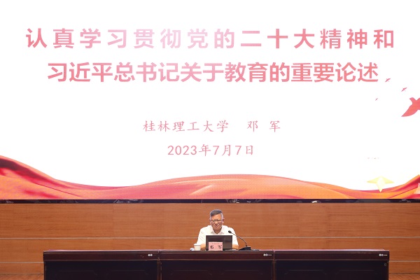 邓军教授作了题为《认真学习贯彻党的二十大精神和习近平总书记关于教育的重要论述》的专题教学。邓军教授从全面学习全面把握全面贯彻党的二十大精神、深入学习习近平总书记关于教育的重要论述、以奋斗者姿态,重实效、强实干、抓落实,在推进教育现代化新征程中走在前、当先锋、做表率三大主题为主线,围绕党的二十大报告中有关教育的新表述、新概括、新论断,以习近平总书记关于教育的重要讲话为依据,重点阐述了习近平总书记关于教育的重要论述的时代背景、习近平总书记关于教育的重要论述的科学内涵、习近平总书记关于加快建设教育强国的战略部署等三方面进行系统分析。专题教学立意高远、内容丰富,全面系统地分析了习近平总书记关于教育的重要论述,为新时代建设高质量教育体系提供新思考新思路。