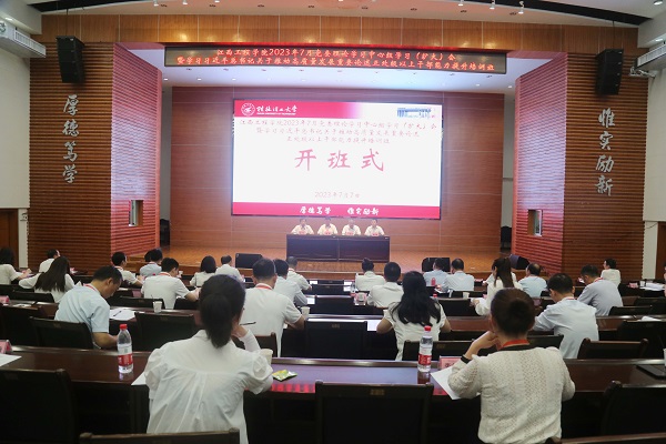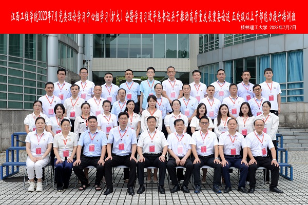 近日,江西工程学院党委理论学习中心组学习(扩大)会暨学习习近平总书记关于推动高质量发展重要论述正处级以上干部能力提升培训班在桂林理工大学举行。学校党委书记、督导专员胡涌,党委副书记、校长陈学军,党委副书记、副校长冯赟,党委专职副书记、纪委书记黄志良,党委委员、校长助理邹建民,桂林理工大学党委副书记、校长王敦球,继续教育学院党支部书记、院长周国桥出席培训班开班式,学校党政班子成员、正处级以上干部40余人参加本次培训班。