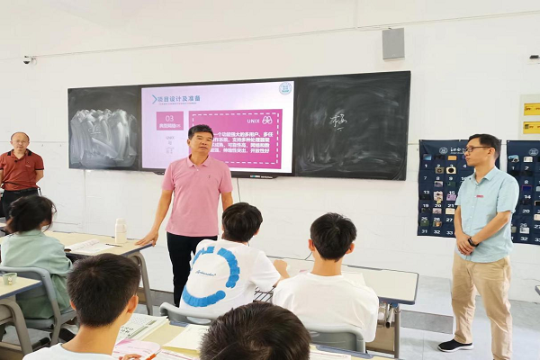 课后,杨名权董事与师生进行交流,对任课教师认真负责的教学态度和过硬的业务水平给予肯定,并与同学们进行了热烈的互动。他以《网络操作系统》课程为切入点,向同学们介绍了操作系统国产化的必要性和趋势,鼓励同学们认真学习专业知识,抓住机遇,在数字化浪潮中成就自我。新学期新气象,杨名权董事对同学们提出以下几点要求:一是要认真学好专业知识,提升专业技能,为祖国建设贡献自己的力量;二是要勇于实践,只有经过实践的检验,才能得到切实的提高;三是要敢于创新,在学习过程中不断培养自主创新意识与实践能力,以青春助力中国式现代化发展。