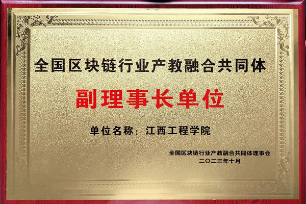 10月8日,在全国区块链行业产教融合共同体成立预备会暨第一届理事会议上审议通过了共同体章程,并讨论了共同体工作规划,以投票表决的方式通过了理事长、副理事长、秘书长、副秘书长、理事单位名单,江西工程学院当选为副理事长单位。成立大会上共同体为我校颁发了副理事长单位牌匾。