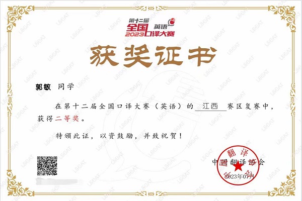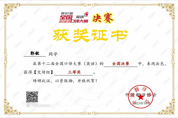 参赛选手来自全国各高校,经过激烈的角逐,我校语言与传播学院学生郭敏获全国三等奖,这是我校首次在全国口译大赛(英语)决赛中获奖。