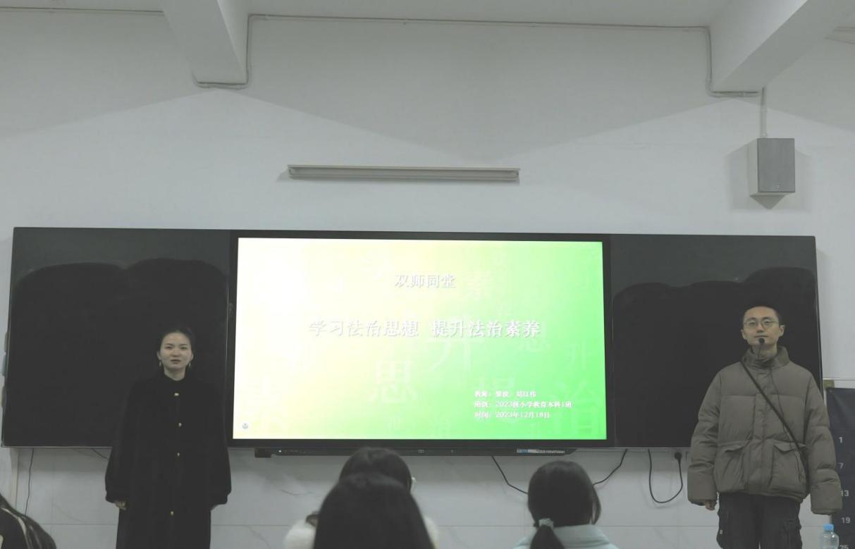 12月11号上午,江西工程学院法律顾问黎波老师受邀作为辅导教师来到2023级小学教育本科1班参与《思想道德与法治》课程的“双师同堂”示范教学。