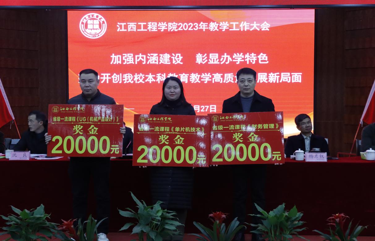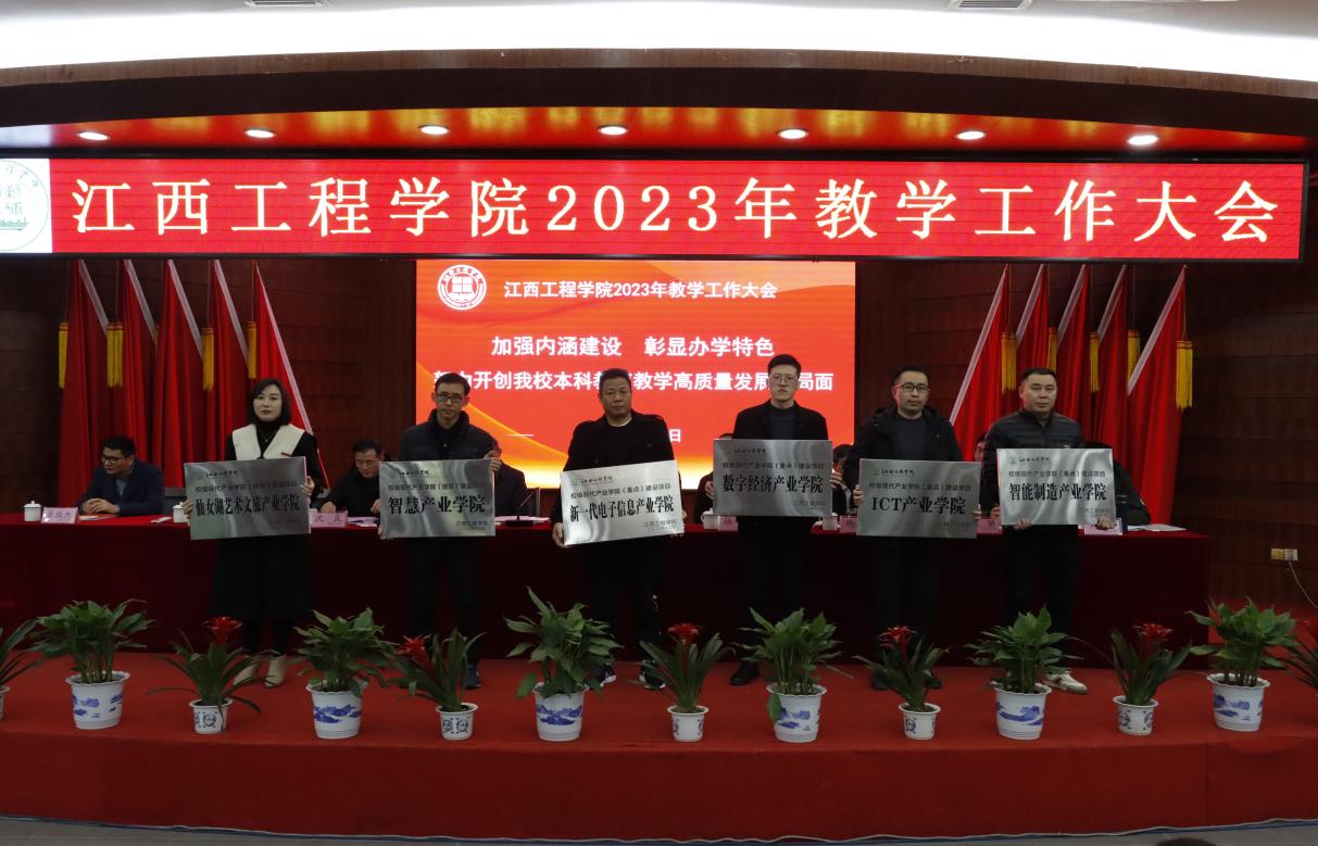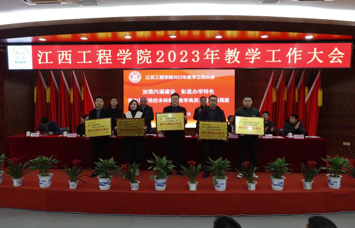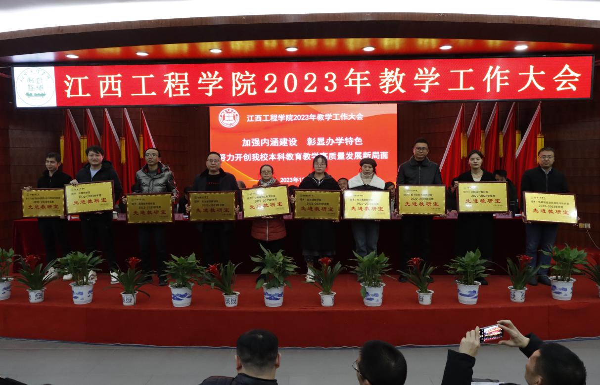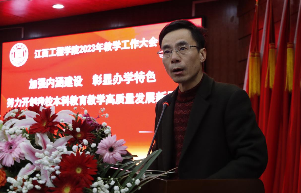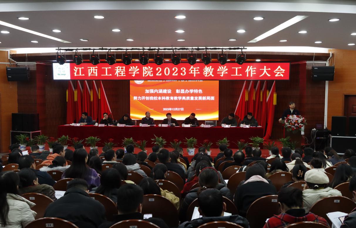12月27日下午,江西工程学院在天工校区学术报告厅一楼隆重召开2023年教学工作大会。会议主题为“加强内涵建设,彰显办学特色,努力开创我校本科教育教学高质量发展新局面”。学校董事长杨显阳,党委书记、督导专员胡涌,教育管理专家史焕平,学校创始人、董事杨名权等校领导出席会议,各职能部门主要负责人、各教学单位领导班子成员、教研室主任、实验中心主任和2022-2023年度教育教学各类先进集体代表、优秀个人参会。会议由党委委员、副校长刘德华主持。