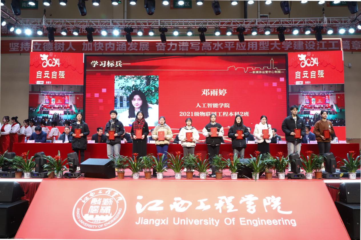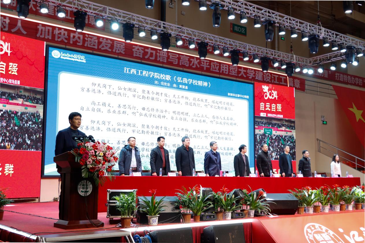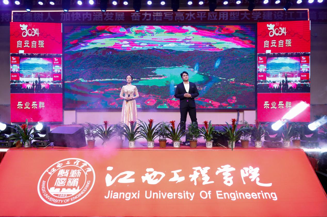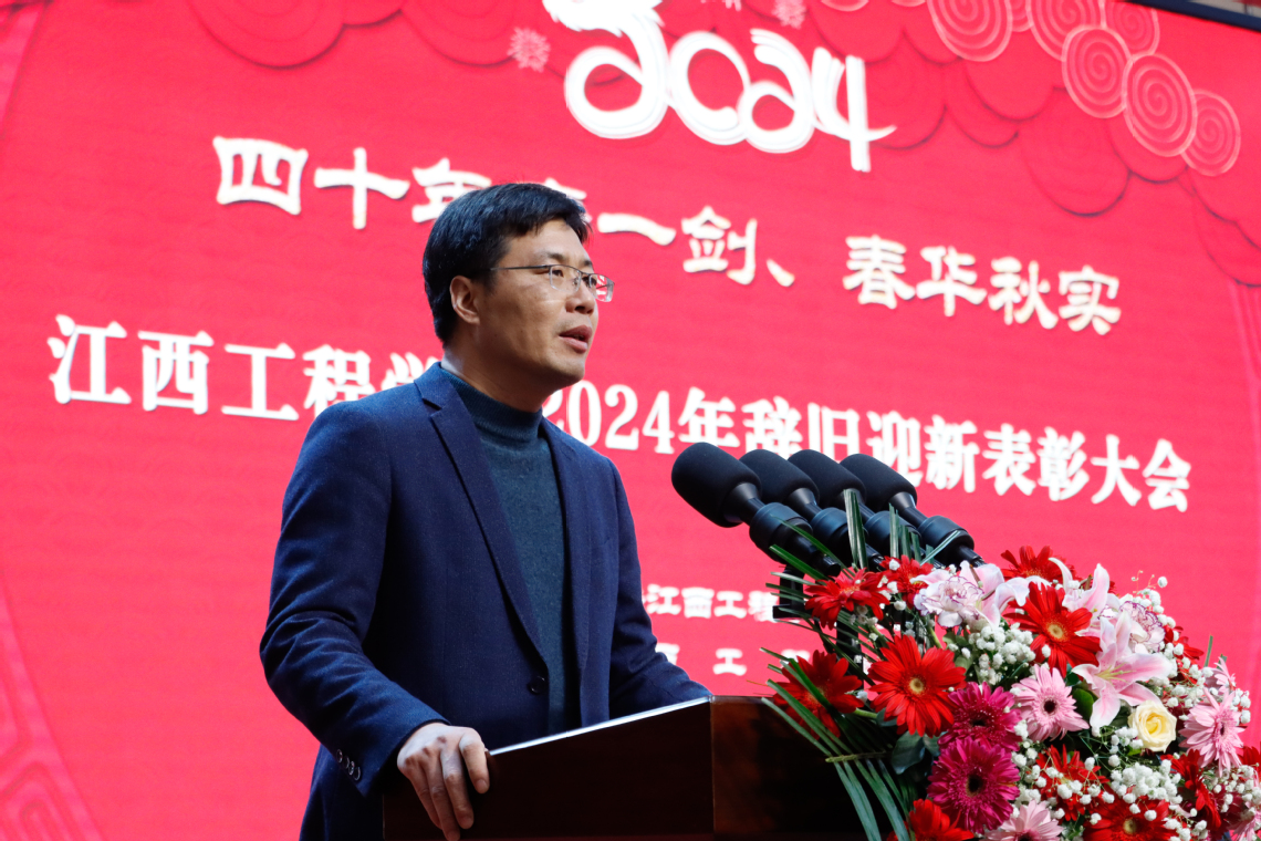 他指出,2023年,学校不断加大投入,夯实办学条件这一“基础工程”。全年投入资金1.09亿元,完成校园基本建设建筑面积6万余平方米。高质量、高标准、高要求建成仙女湖校区双创大厦建设,建筑面积近4万平方米,打造了学校新地标。采购图书4.6万册,丰富充实馆藏,营造书香气息。加大教学科研仪器设备投入力度,总值达到1.4亿多元,应用型办学底蕴更加厚实;狠抓质量,强化教学建设这一“中心工程”。优化专业设置,停招4个本科专业,推动学科专业交叉融合和传统专业改造升级。学校3门课程申报了省级校企合作一流本科课程,6门课程参加了社区教育优秀课程资源评选。新增教育部产学合作协同育人项目6项,教育部产学合作协同育人项目增至19项;紧跟时代,促进科技创新这一“兴校工程”。学校科研平台建设取得新进展,江西工程学院智慧农业技术创新战略联盟获批为江西省产业技术创新战略联盟并入选省级知识产权信息公共服务网点。学校教师累计发表各类论文350余篇,其中高质量论文80余篇。共出版专著、教材20余部;共获批国家实用新型专利、软件著作权和外观专利授权200余项;精心组织,推动科技大赛这一“强能工程”。学校赛事文化发扬光大。全年组织全校学生参加了20余项大学生学科技能竞赛,总计获得全国一等奖7项、二等奖16项、三等奖27项,江西省一等奖51项、二等奖77项、三等奖102项,获奖总人次近400余人次;主动作为,深化产教融合这一“提质工程”。学校积极推动专业共建、课程共创、师资共培、项目共研、就业共助、资源共享,实现了产教融合纵向到底、横向到边的拓展,并联合新余市教育局、大数据中心、京东集团,共建新余市数字经济产教融合共同体;加强管理,提升学生服务这一“满意工程”。学校以学风建设为核心,以班集体建设为重点,以学生党团组织建设为抓手,推动学生管理工作迈上新台阶。通过开展助学惠生工程,彰显江工大爱情怀,形成“解困—育人—成才—回馈”的良性循环;外引内培,做强师资建设这一“领航工程”。学校引进一批高学历高职称教师,组织教师赴北京师范大学-香港浸会大学、桂林理工大学、凤凰湾度假村等地参加各类学习培训研修共计2002人次。1个教学团队列为江西省高水平本科教学团队立项建设。15名教师入选新余市数字经济人才专家库。一批教师取得中、高级职称,师资结构日趋优化;精准施策,抓好就业工作这一“民生工程”。学校累计开展了3场大型招聘会和各类线上线下专场招聘会69场,累计提供13527个就业岗位。深入开展书记校长访企拓岗促就业专项行动走访企业共计148家,为毕业生拓宽就业岗位近7000余个,实习岗位1500余个。