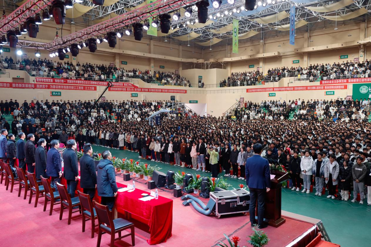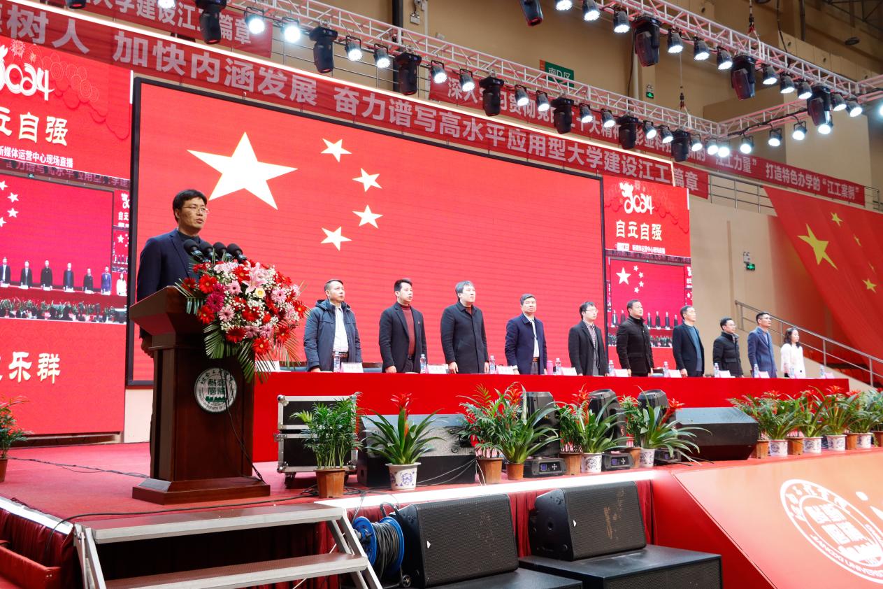 杨显阳在会上总结了学校40年的办学成就和经验,分析了高等教育形势,并对2024年发展任务进行了部署。他强调,2024年学校要坚持以习近平新时代中国特色社会主义思想为指导,深入学习贯彻党的二十大精神,坚持教育公益性,紧紧围绕立德树人根本任务,突出师生至上,健全人才培养的“江工体系”,打造先行先试的“江工数智”,彰显科技创新的“江工力量”,铸造特色办学的“江工品牌”,展现充分喷涌的“江工活力”,涵养服务学生的“江工大爱”,全力推动学校各项事业高质量发展。2024年是龙年,希望全校师生携起手来,拿出生龙活虎的朝气、龙腾虎跃的干劲,以更加坚定的信心,务实的态度,创新的精神,饱满的热情,加快建设高水平应用型大学,提高应用型人才培养水平,为经济社会发展作出新的更大贡献!