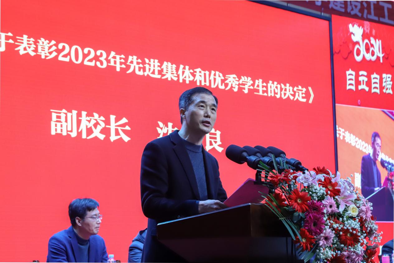 副校长沈良宣读《关于表彰2023年先进集体和优秀学生的决定》
