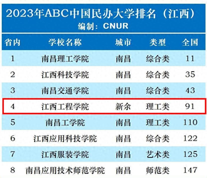 2023年,ABC中国民办大学排名发布,江西省有8所高校上榜。其中,江西工程学院位列第四名。这一成绩充分展现了江西工程学院高等教育水平的明显提升,这一榜单也为学生选择民办大学提供了重要参考,同时也为学校进一步发展提供了借鉴。这一排名结果再次证明了江西省在高等教育领域的突出表现,为该省的教育改革和提升树立了榜样。