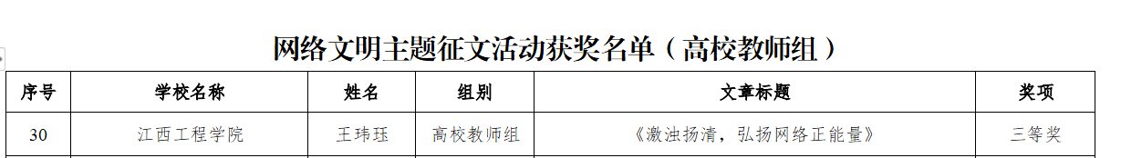 【喜报】江西工程学院参加江西省网络文明主题征文活动喜获多个奖项