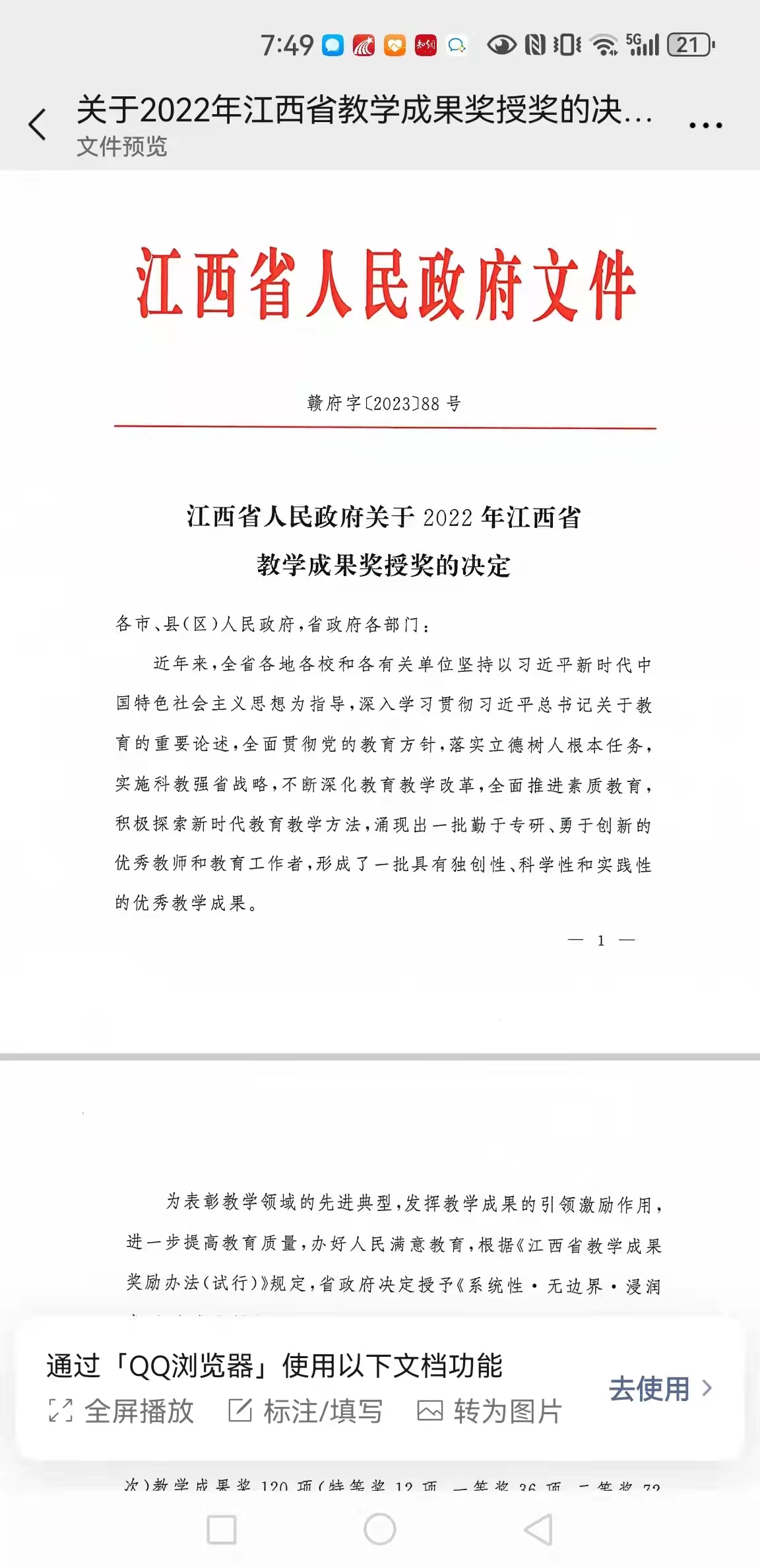 画卷4:一封来自江西省教育厅的感谢信
