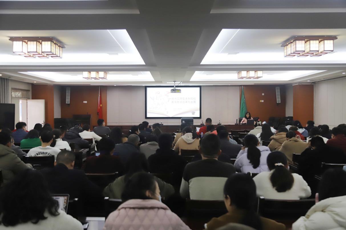 为适应我国经济社会发展对地方应用型高校教育教学能力的要求,深化我校与地方企业产教融合,全面推进学校内涵式发展,学校特邀皮玲博士于2024年3月14日下午在天工校区行政楼三楼会议室举办了题为“地方应用型本科院校教育教学改革与发展”的专题讲座,各二级学院中层管理干部、教师代表100余人参加。