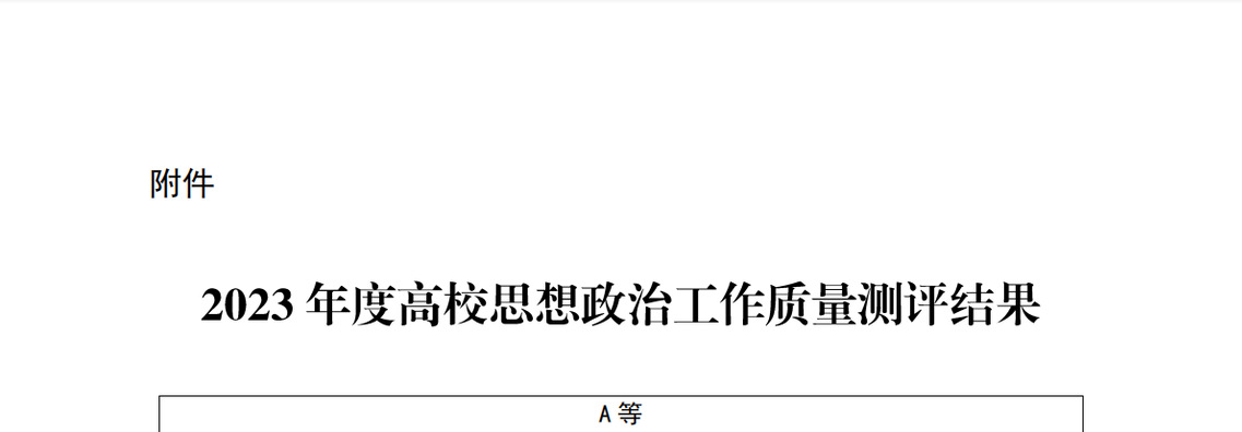近日,省委教育工委发布《关于公布2023年度高校思想政治工作质量测评结果的通知》,经专家初评、反馈意见、复评核实、工委会审议等环节,我校2023年度思想政治工作质量被评为A等次,已连续两年被评为A等次。据悉,全省共有46所高校获得A等次,我校考评成绩在全省同类高校中位居前列。