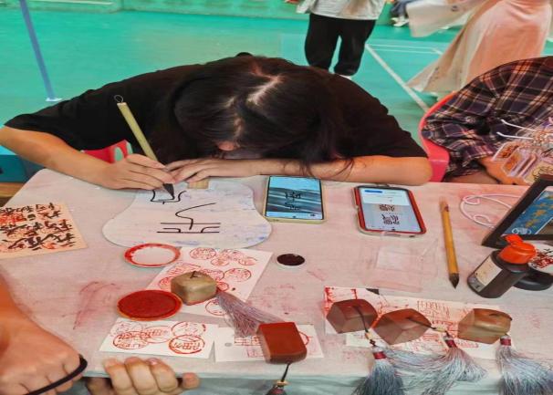 艺术节围绕绘花灯、画脸谱、剪纸、射五毒、棋类、民乐、书法等传统文化项目体验,漂漆、拓印、传统美食、包粽子等多个展位,让学生可以“沉浸式”体验中华优秀传统文化,感受传统文化魅力。