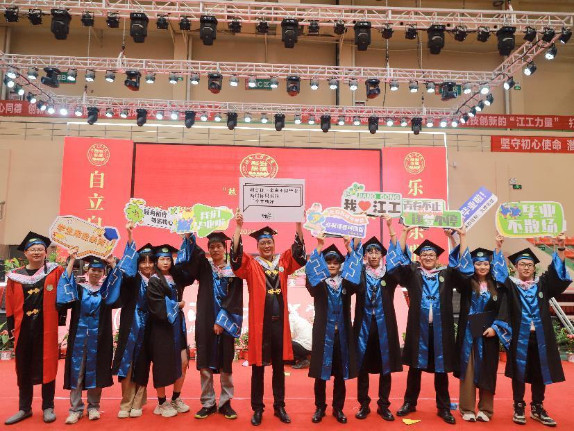 精英博士团和高科芯片团这两支校友团队“回娘家”,为应届毕业生树立了榜样,鼓足了士气。他们的成功经历,将弘扬天文化、砥砺创新品格融入了2024届毕业生的青春记忆。100余名考取研究生的同学受到表彰,祝福、惜别、眷恋与江工精神的接力传递、志在千里的青春梦想、云帆远济的矢志笃行相互交织。在感动、欢笑与牵挂中,典礼的氛围被一次次推向高潮,文化的化育作用展现得淋漓尽致。
