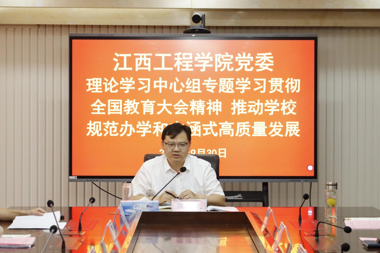 党委副书记、副校长冯赟,党委委员、副校长黄海军,党委委员、董事长助理、校长助理乐俊杰围绕“学习贯彻全国教育大会精神 推动学校规范办学和内涵式高质量发展”重要内容为主题,结合本职工作作了中心发言。大家纷纷表示,要深入学习贯彻习近平总书记《论教育》和全国教育大会精神,深刻把握教育的政治属性、人民属性、战略属性,把思想和行动统一到习近平总书记在全国教育大会上的重要讲话精神和党中央决策部署上来,以深入开展“大抓落实年”活动为契机,切实增强抓落实的思想自觉、政治自觉、行动自觉,以高质量落实推进学校内涵式高质量发展。