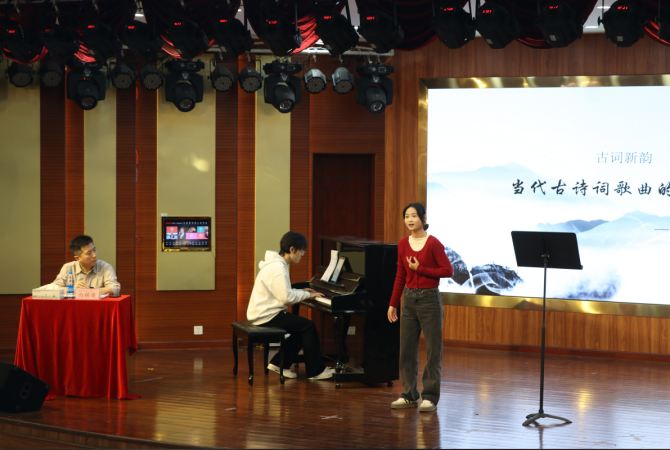 在讲学中,白栋梁老师通过分享自己的创作经验和对古诗词歌曲的深刻理解,引导学生更好地演绎古诗词歌曲,传承和弘扬中华优秀传统文化。