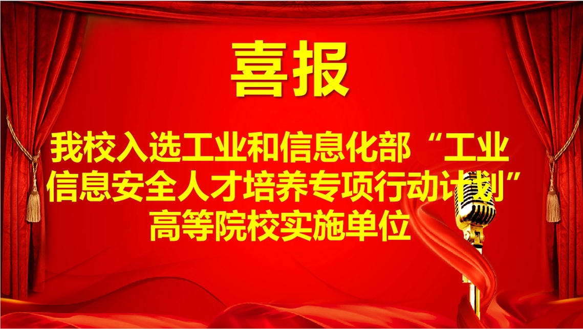3月28日,工业和信息化部教育与考试中心发布了《关于公示工业信息安全人才培养专项行动计划高等院校实施单位入选名单的公告》。经过严格的院校申报、组织遴选、分组答辩和专家评审等环节,最终确认了全国48所高等院校为首批专项行动计划实施单位。全省仅南昌大学、江西警察学院、东华理工大学和我校四所本科院校入选,民办本科院校仅我校一所。