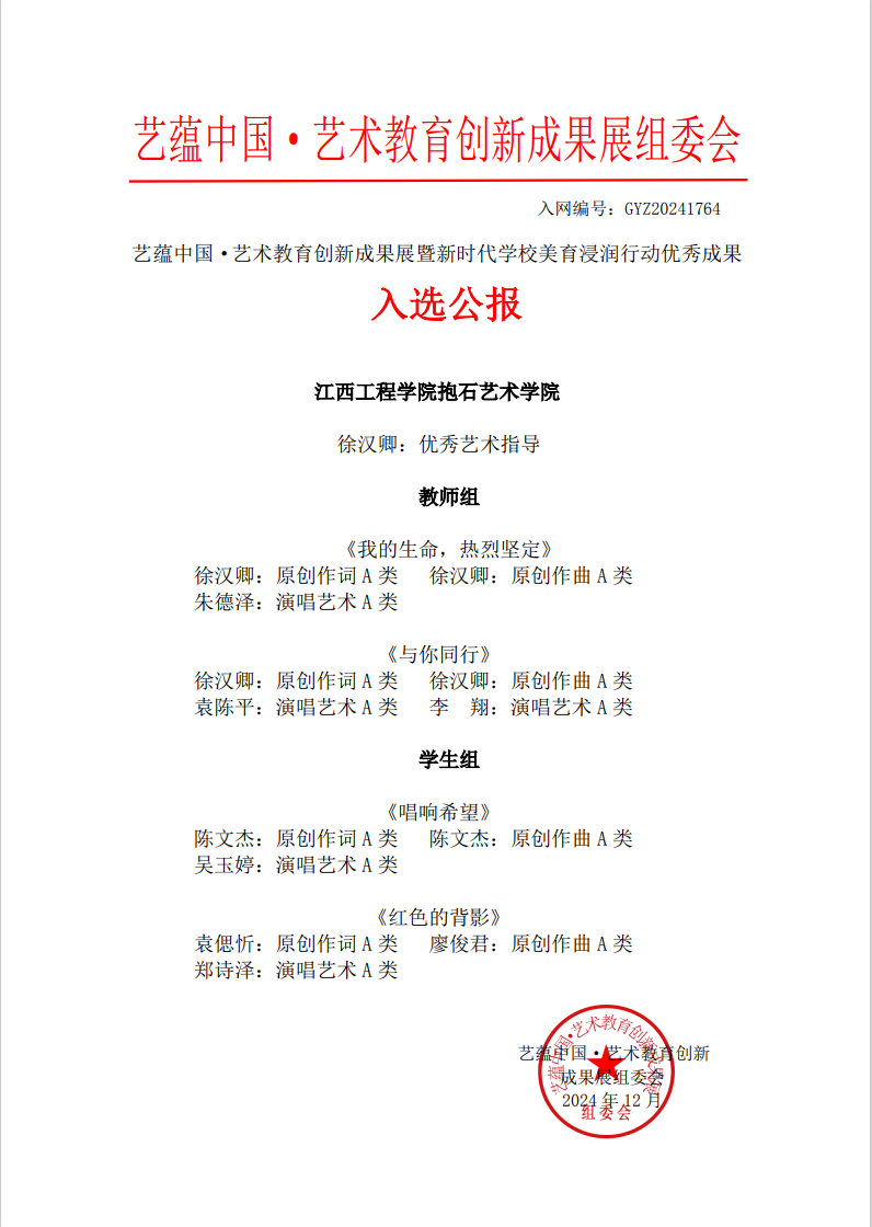 江西工程学院抱石艺术学院在艺蕴中国・艺术教育创新成果展暨新时代学校美育浸润行动中的音乐类优秀成果,无疑是学院音乐教育发展的一个重要里程碑。