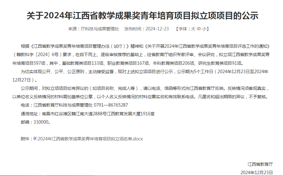 此次推报工作过程中,学校领导高度重视,根据《江西省教学成果奖青年培育项目管理办法(试行)》精神和《关于开展2024年江西省教学成果奖青年培育项目评选工作的通知》(赣教科字〔2024〕6号)要求,经校外专家评审,确定《以实践创新能力为导向的计算机类专业“四线二融三阶”培养模式探索与实践》等12个项目立项校级教学成果奖培育项目,并经学校推荐5个项目申报2024年江西省教学成果奖青年培育项目。