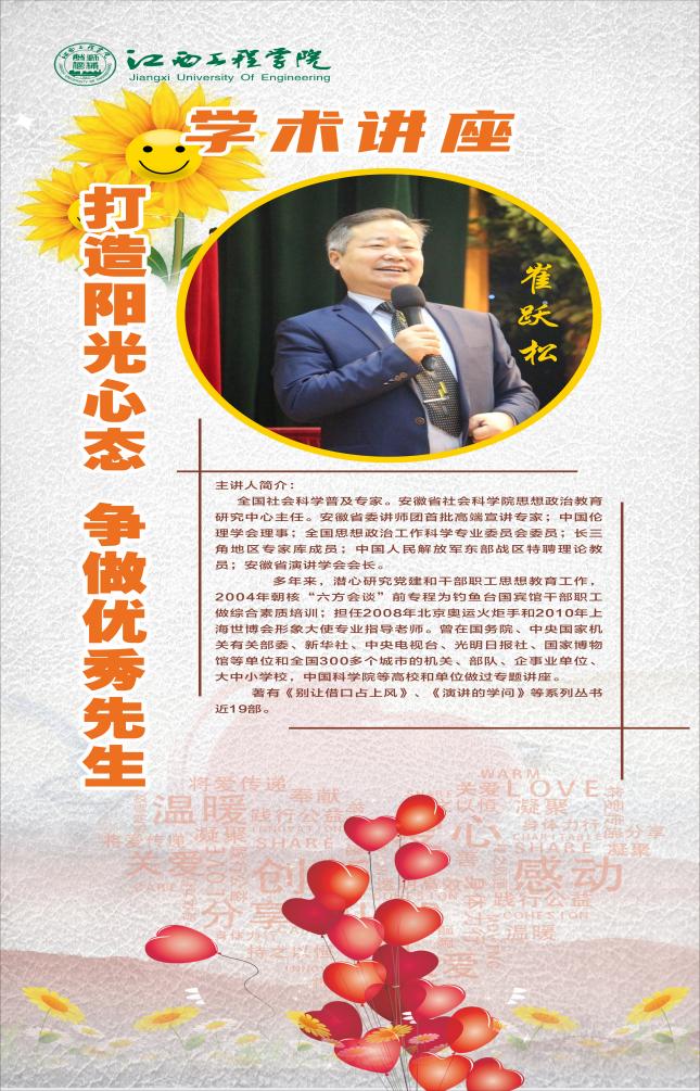 “众多人喊他‘三不先生’即‘不喝一口水、不看一个字、不超一分钟’的‘网红老师’崔跃松先生,终于莅临江西工程学院,为学校教师们开启一场充满智慧与力量的知识盛宴!”