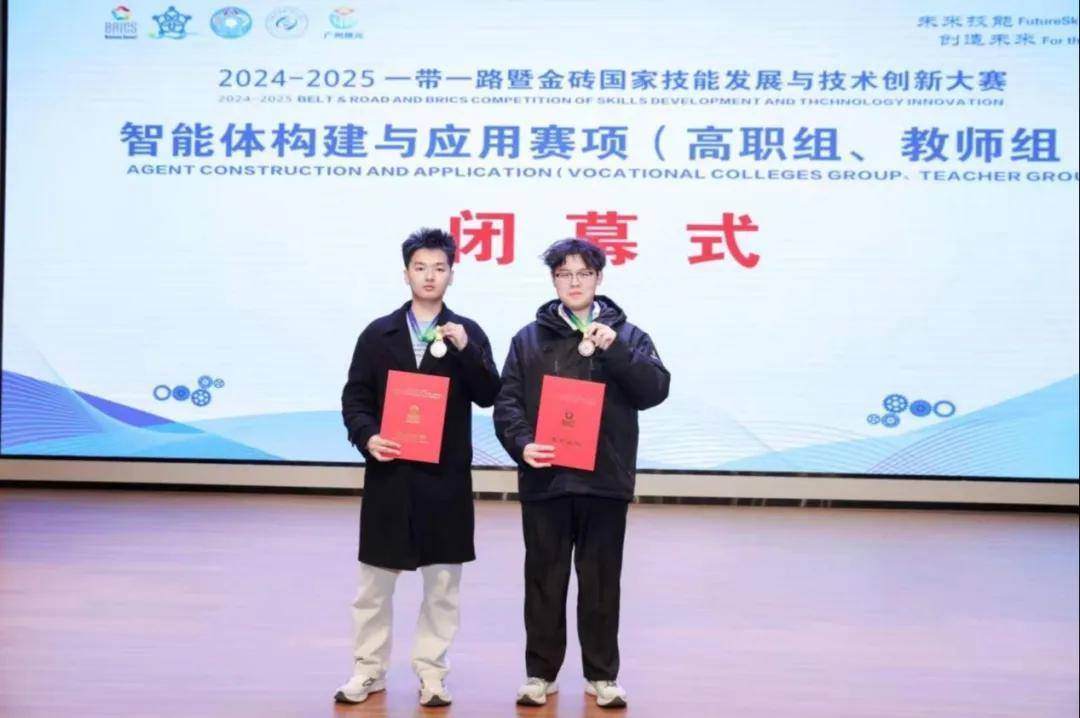 近期,在2024-2025年度“一带一路”暨金砖国家技能发展与技术创新大赛智能体构建与应用赛项中,江西工程学院人工智能与数据科学学院的杨钧、张锡淳两位同学在伍琴兰老师的悉心指导下,以及在陈聪老师的带领下,首次参赛并荣获国赛三等奖的好成绩。