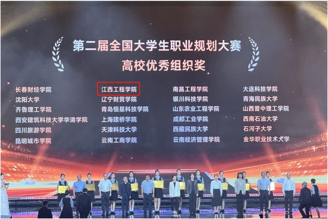 颁奖活动现场,江西工程学院凭借出色的赛事组织能力,从全国2763所参赛高校中脱颖而出,获评全国“高校优秀组织奖”,是全国仅48所获此殊荣的本科院校之一,也是江西省2所获奖本科院校之一,江西省唯一获此殊荣的民办本科高校,实现了学校在该项赛事中的重大突破。