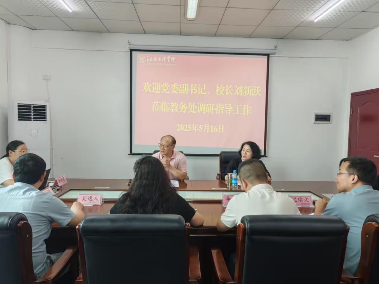 5月16日下午,党委副书记、校长刘新跃前往教务处走访调研,与教务处全体科级以上干部展开座谈交流,深入了解学校教育教学工作的开展状况和迎接本科教学工作合格评估的准备和达标情况,并就进一步提升教学质量、优化教学管理、推进教育教学改革等方面给予指导。校办主任黄宏丽陪同调研。