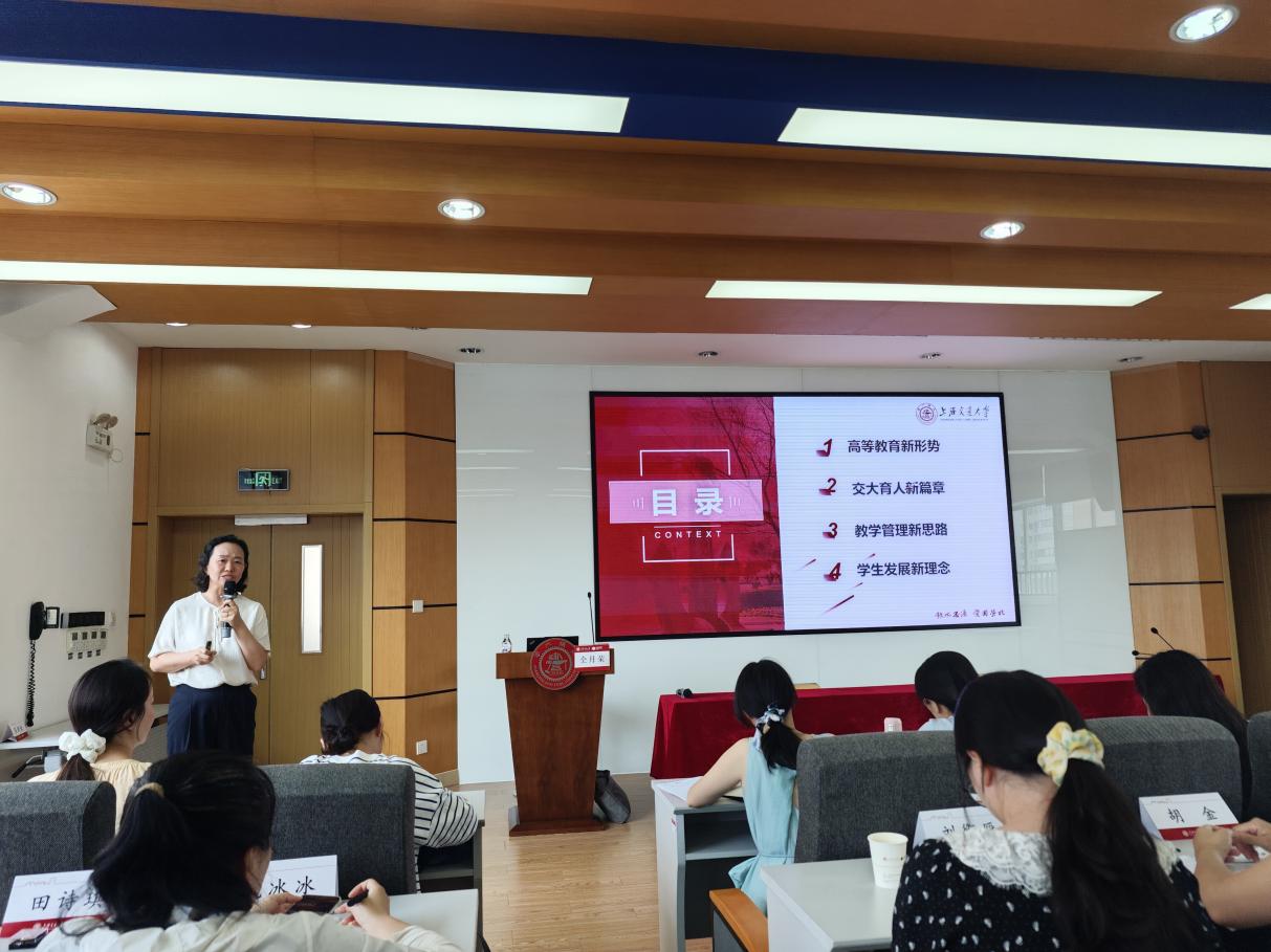 开班仪式结束后,上海交通大学教务处副处长仝月荣围绕“新形势下以学生发展为中心的本科人才培养实践与思考”的主题,为江西工程学院教师作专题授课。她结合交大近年改革实践,从高等教育新形势、人才培养举措、教学管理创新及学生发展理念四方面展开,强调个性化培养、交叉学科建设、AI赋能教育及精细化教学管理,旨在推动学生全面成长与最大增值,为参训教师提供了具有启发性的人才培养新思路。