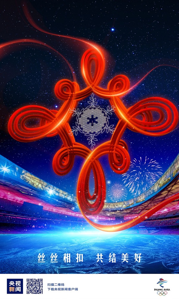 无数条红丝带从四面八方飞入“鸟巢”。