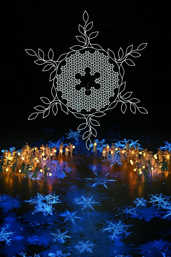 将场内悬挂的雪花火炬台