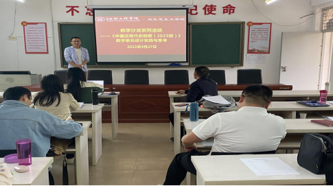 6.为了全面提高学院教师队伍思想政治素质和教育教学水平,4月7日,学院组织教师线上参加了教育部组织的周末大讲堂;4月7日和4月20日,学院组织教师线上参加了江西省高校思政课问题式专题化团队教学改革集体备课会;4月27日和4月28日,学院线下组织教师集体学习并召开了全国高校思想政治理论课2023年版教材使用培训会。