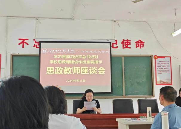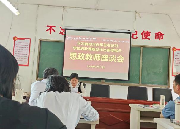 为深入学习贯彻习近平总书记近日对学校思政课建设作出的重要指示精神,切实推进学院思政课教育的创新发展,确保教育教学的方向正确、内容丰富、方法科学,5月15日下午,马克思主义学院在天工校区教学楼A201会议室召开学习贯彻习近平总书记对学校思政课建设作出的重要指示精神座谈会。马克思主义学院直属党支部书记、院长胡延庆主持会议,全体思政课教师参会。