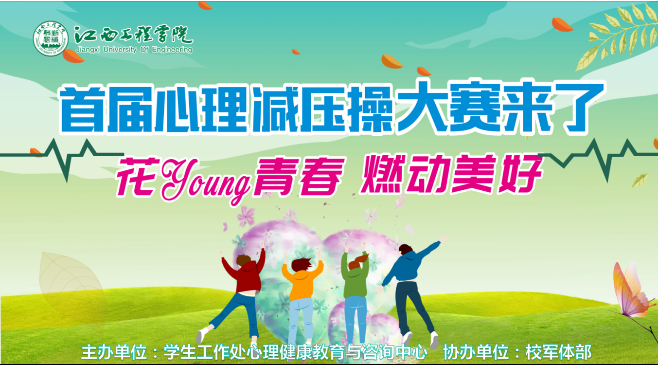 本次比赛以“花Young青春 燃动美好”为主题,旨在通过心理减压操的方式,让更多的同学走出教室与寝室,让大家一起动起来、嗨起来、美起来,将运动和舞蹈、心育与美育、体育有机结合起来。比赛先由各学院初选2支队伍参加学校决赛,参与学生多,热情高,形式多样,以体操为主要形式,融入舞蹈、情景剧等多种艺术表现形式。