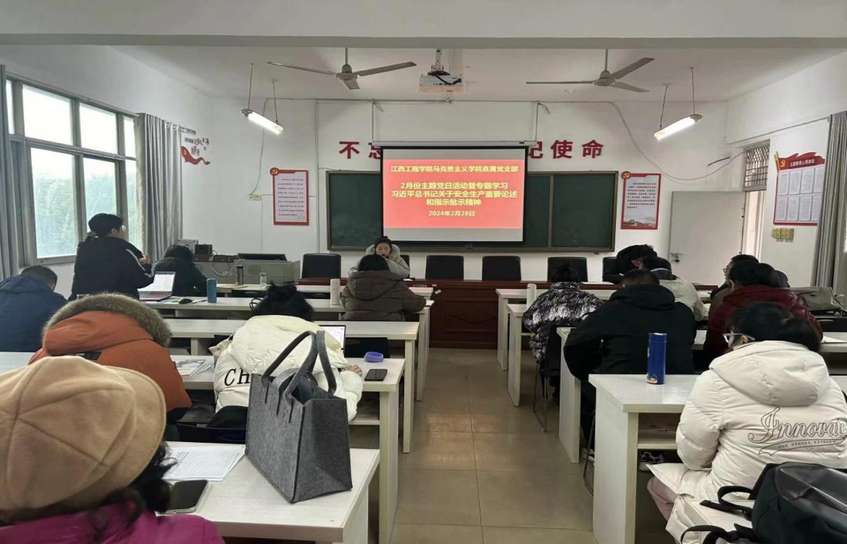 为深入学习习近平总书记关于安全生产的重要论述和对渝水区佳乐苑临街店铺“1·24”特大火灾事故作出的重要指示精神。2月28日下午,马克思主义学院直属党支部在A201会议室召开2月份主题党日活动暨专题学习习近平总书记关于安全生产的重要论述和指示批示精神,会议由党支部副书记方妙薇主持,党支部书记、院长胡延庆,副院长崔丽出席,全体思政课教师参加。