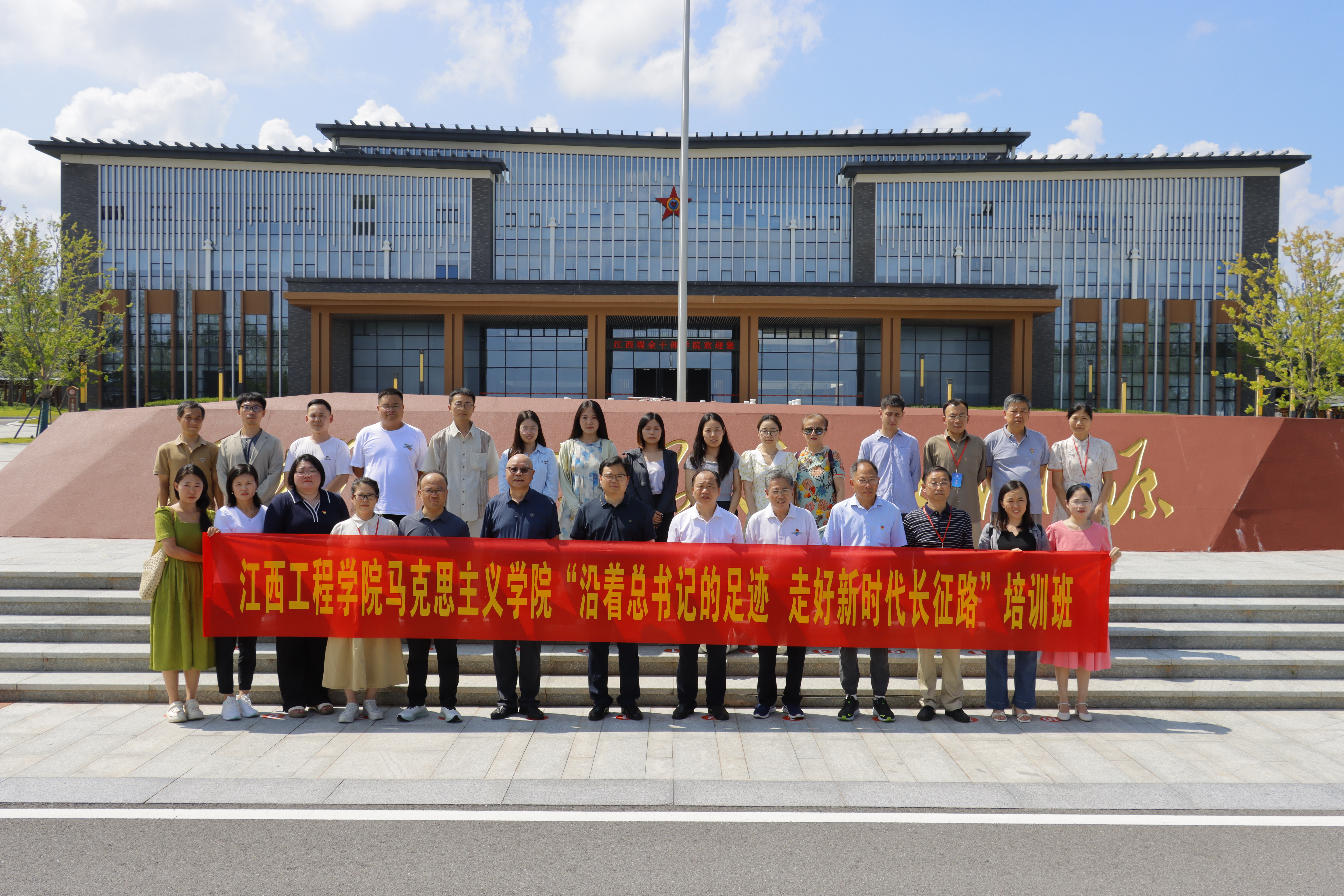 7月14日,江西工程学院马克思主义学院“沿着总书记的足迹,走好新时代长征路”专题培训班在江西瑞金干部学院2号教学楼108教室正式开班。此次培训班由江西瑞金干部学院教师朱志栋主持。江西瑞金干部学院副院长袁芳,江西工程学院党委书记、督导专员魏建克,校党委委员、宣传部部长兼马克思主义学院直属党支部书记于永清,校党办主任刘勇,马克思主义学院院长王勇出席开班仪式。马克思主义学院近30名教师代表参加培训。