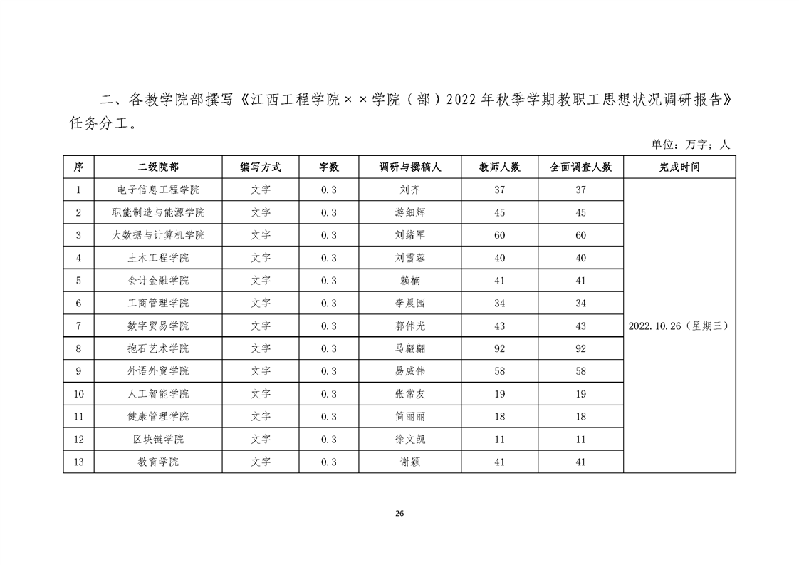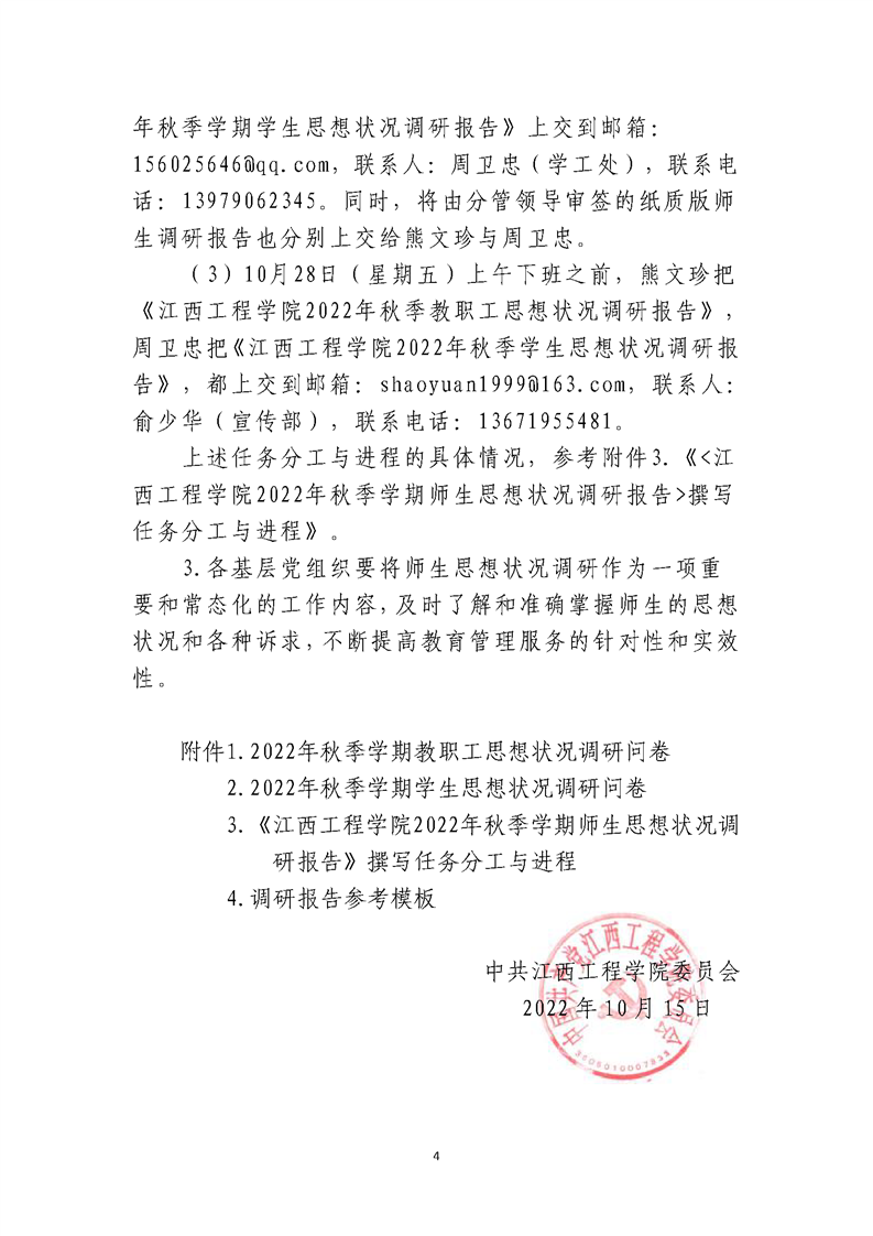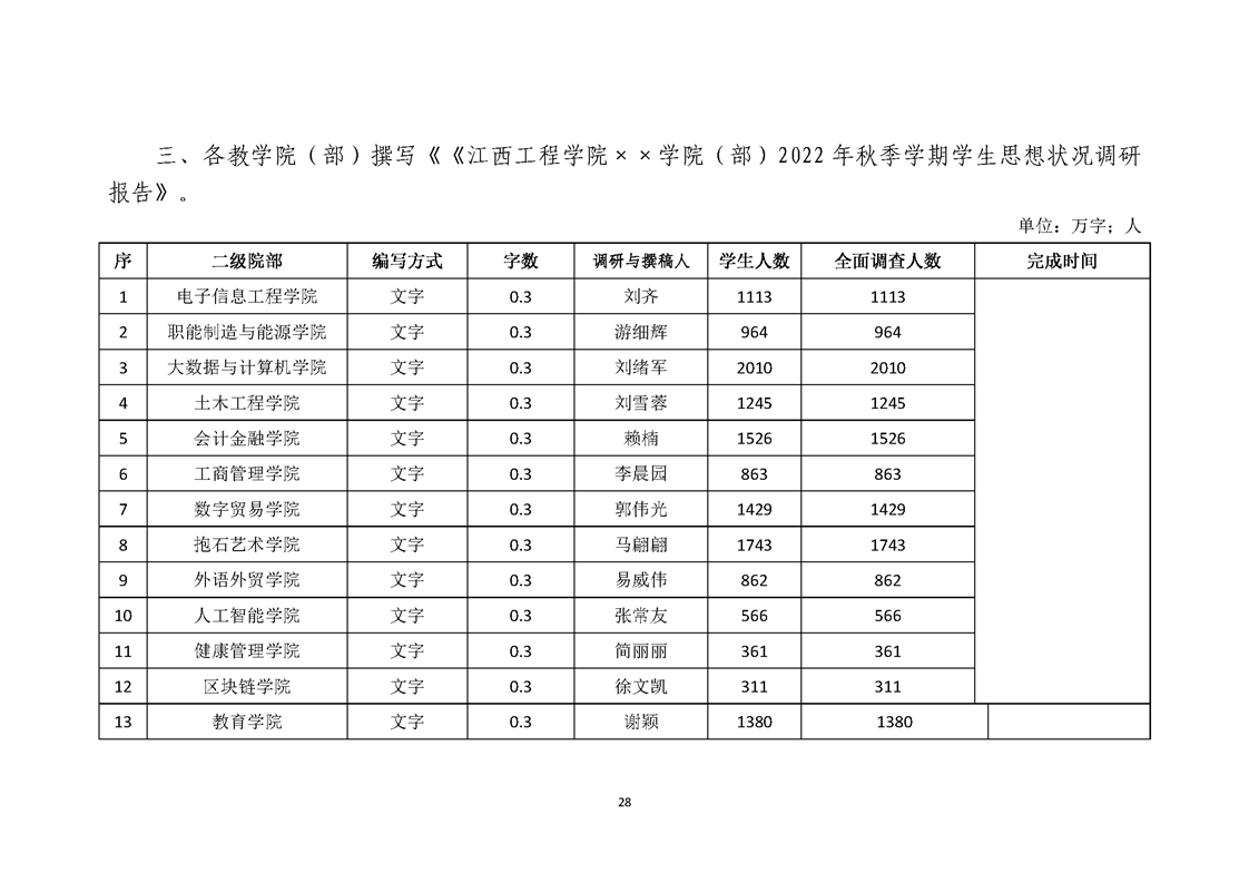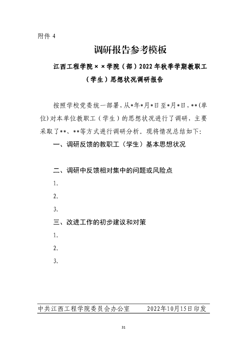 关于做好《江西工程学院2022年秋季学期师生 思想状况调研报告》撰写工作的通知