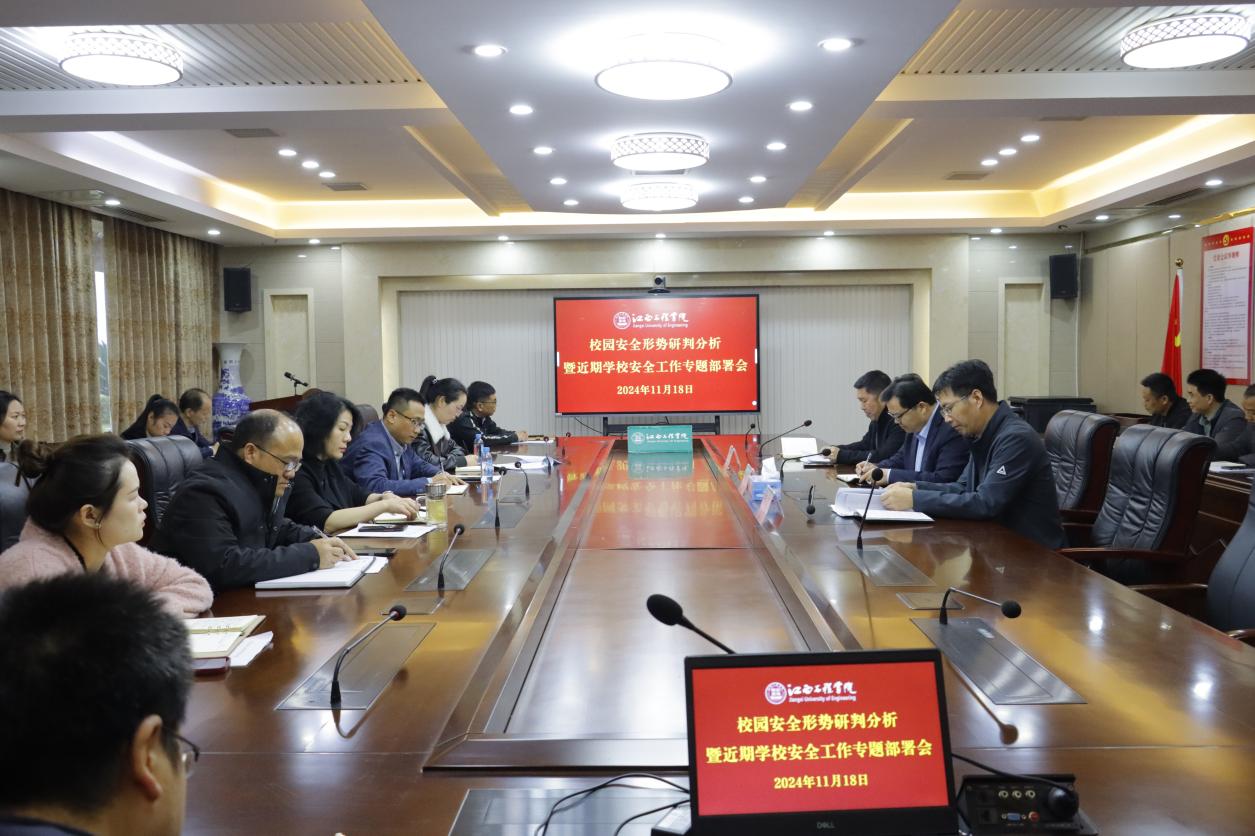 11月18日,我校召开校园安全形势研判分析暨近期学校安全工作专题部署会,分析研判当前安全稳定工作面临的形势和挑战,安排部署校园安全稳定相关工作。校党委书记、督导专员魏建克,党委副书记、副校长冯赟,党委委员、校长助理邹建民出席会议,各职能部门负责人、二级学院党总支(直属党支部)书记参加会议。