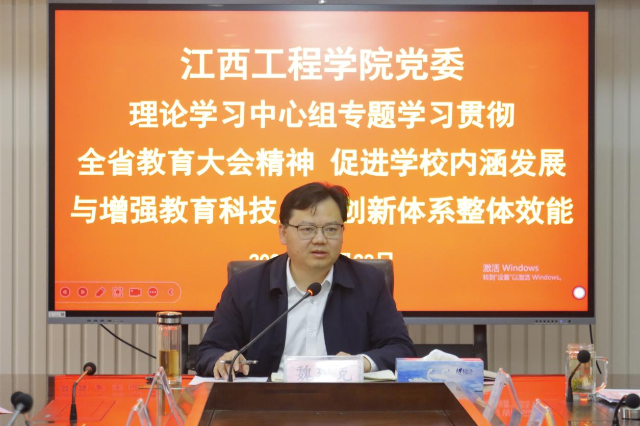 就贯彻本次会议精神,魏建克提出四点要求。一是正确认识我国教育面临着百年未有之大变局下的世界之变、时代之变、历史之变。要在新一轮科技革命和产业变革深入发展的科技环境下,加强学校内涵发展,持续提升核心竞争力。二是坚持党的全面领导,确保政治方向不偏差、学生成长不掉队、高质量发展不脱轨。要坚持和加强党的全面领导,提高政治站位,充分认识教育强省的重要意义,牢牢把握教育强省的政治属性、人民属性、战略属性,进一步增强责任感和使命感,凝心聚力推动教育强省建设的江工合力。三是紧扣学生思想实际,加强思想政治教育的针对性。要落实立德树人根本任务,加强和改进思想政治教育,持续深化“大思政课”综合改革试验区建设,强化德智体美劳“五育并举”,促进学生全面发展。四是激发办学活力,营造协同办学的治理体系与育人环境。要深化学校管理机制改革,不甘于现状、勇于接受和迎接挑战,积极开拓进取,追求卓越的精神状态,充分调动师生员工的积极性,打造充满活力的办学体系。