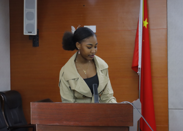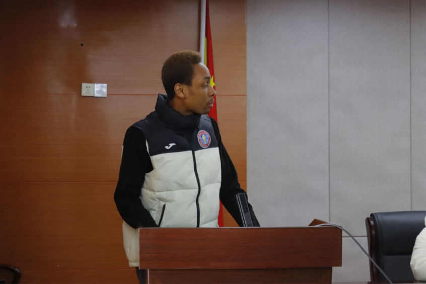 随后,来自尼日利亚的留学生天乐和来自南苏丹的伊丽莎白分别上台发言。天乐同学深情地表达了对学校的感激之情,他说:“在中国的学习生活让我受益匪浅,我不仅学到了丰富的专业知识,还深刻感受到了中国人民的热情和友好。这个春节,虽然远离家乡,但学校给予的温暖和关怀让我倍感亲切。”伊丽莎白也分享了自己在中国的学习和生活经历,表达了对未来的美好憧憬。
