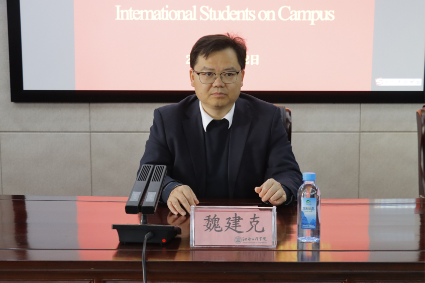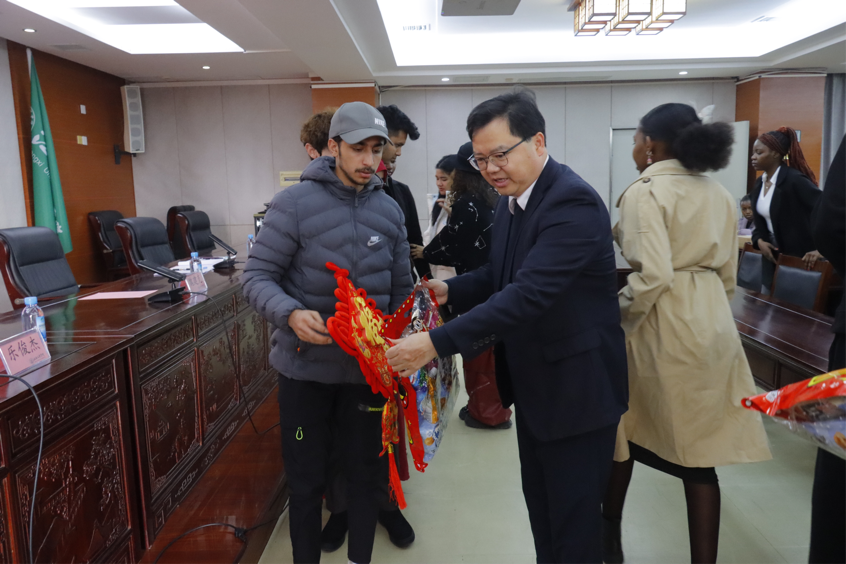 会议在一片喜庆祥和的氛围中拉开帷幕。魏建克代表学校全体师生向各位留学生致以诚挚的新年祝贺,希望大家在中国度过一个欢乐、祥和、健康的新春佳节。同时,魏建克鼓励留学生们要珍惜在中国的学习机会,努力学习中文和中国文化,不断提升自己的综合素质,为成为中外友好交流的使者贡献自己的力量。