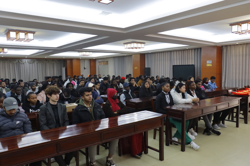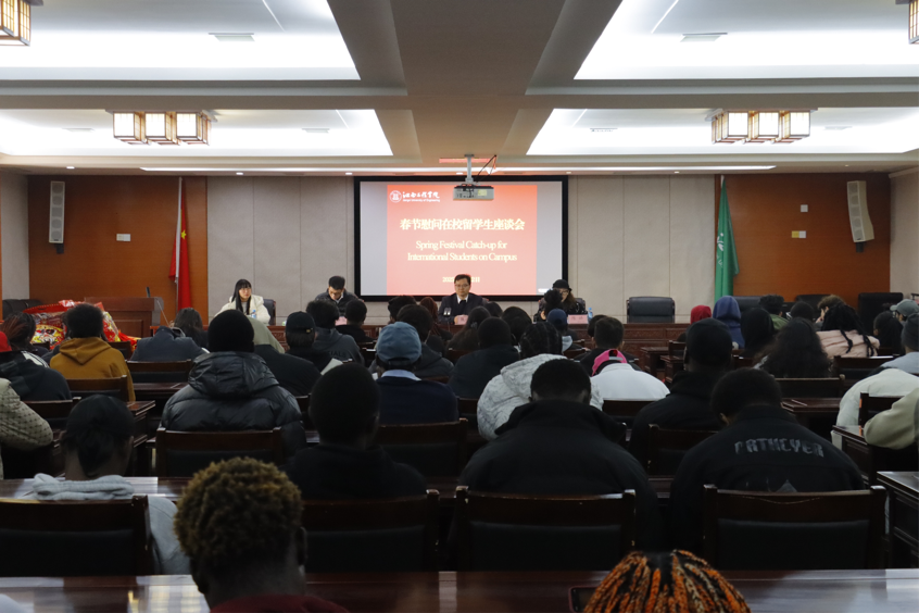 1月22日,在行政楼3楼会议室,一场温馨而热烈的春节慰问在校留学生座谈会隆重举行。此次座谈会旨在向留学生表达节日的问候与关怀,增强留学生的归属感。校党委书记、督导专员魏建克,校党委委员、理事长助理、校长助理乐俊杰,国际教育学院相关教师及122名来自32个国家的留学生共同参与了此次会议。会议由乐俊杰主持。