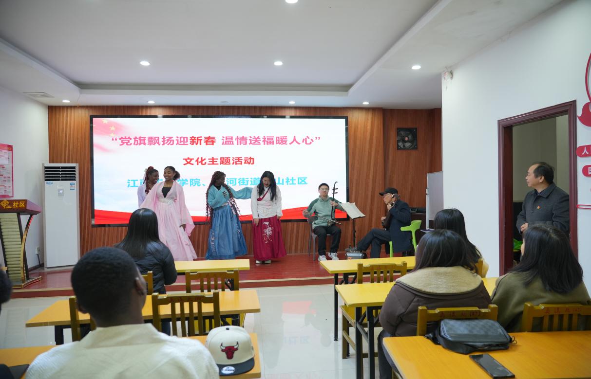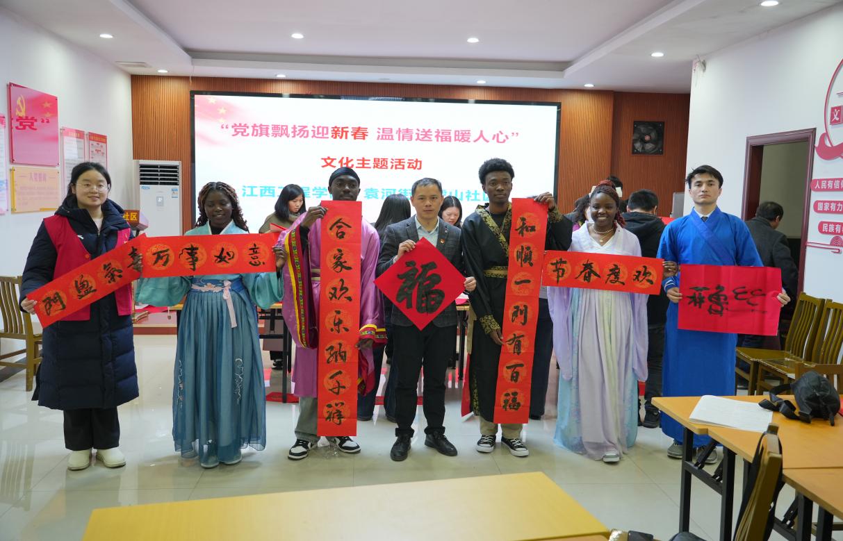 1月13日,学校党委组织部、党委宣传部组织机关党总支和10余名外国留学生走进袁河街道虎山社区,开展宣讲党的二十届三中全会精神、才艺表演、写春联送祝福等活动,旨在传承和弘扬中华优秀传统文化,发挥学校党员先锋模范作用,增强党员责任感与使命感,受到社区居民热烈欢迎和高度赞誉。