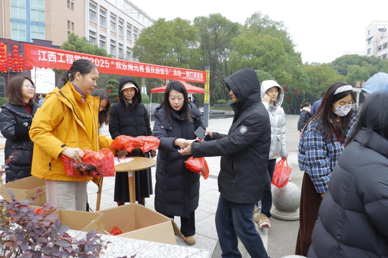 2月12日,农历正月十五,江西工程学院天工校区行政楼前人头攒动、热闹非凡,由校工会主办的“欢乐闹元宵 喜庆迎佳节”2025年元宵文化活动宛如一幅绚丽多彩的民俗画卷,徐徐展开。舞狮、猜灯谜、吃汤圆这三个环节,不仅传承了中华优秀传统文化,更展现出校园的蓬勃活力,尤其是舞狮环节中外国留学生打鼓的场景,为这场盛会增添了独特的文化交融魅力。学校师生们积极参与非遗项目和传统民俗体验活动,感受中华优秀传统文化魅力,欢度元宵佳节。