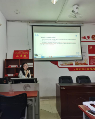 彭琪老师在讲授《外贸函电》课程时台风稳重,声音洪亮,气场十足,课程内容规划清晰,在教授学生撰写外贸信函时独具特色,教学方法新颖。王真真老师在《商务英语精读》课程上利用世博会的双语视频以及英文歌曲作为导入,带领大家对教材课文进行精读学习,在课文有一定难度的情况下,精细拆分段落讲解,具有很强的课堂吸引力。刘庆老师作为外语外贸学院的第二外语教师,为大家带来了一场别致的日语课。她先从日本文化进行课堂导入,以独特的方式调动了课堂氛围,在日语单词和语法的讲解上也是由浅入深,并将词汇和语法的学习运用到日语课文的理解中,加深学生对日语新单词新语法的巩固。