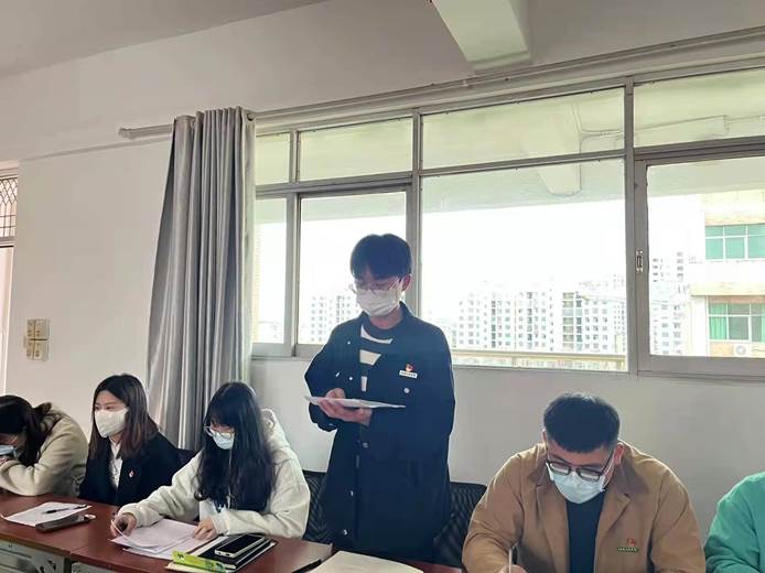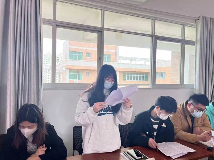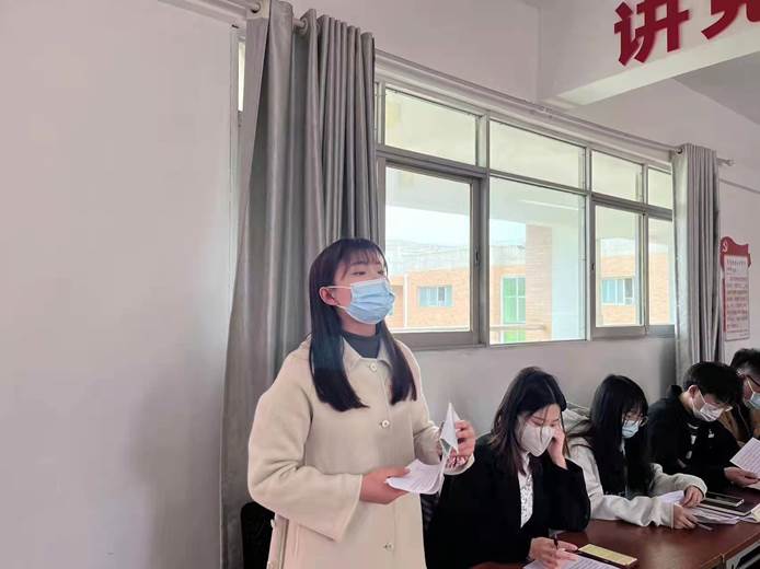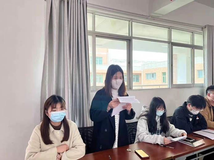 “永葆初心,肩负使命,在伟大事业中找到自己的位置,一个人才能活出精彩、活得有价值。”为进一步扩大党员队伍,增强党员队伍生机与活力,不断为党输送新鲜血液,2022年3月24日,外语外贸学院学生党支部召开预备党员转正大会。本次会议会议由外语外贸学院学生党支部书记傅煜平主持,外语外贸学院党总支书记、院长车婧,党总支副书记王雄和全体党员参加。