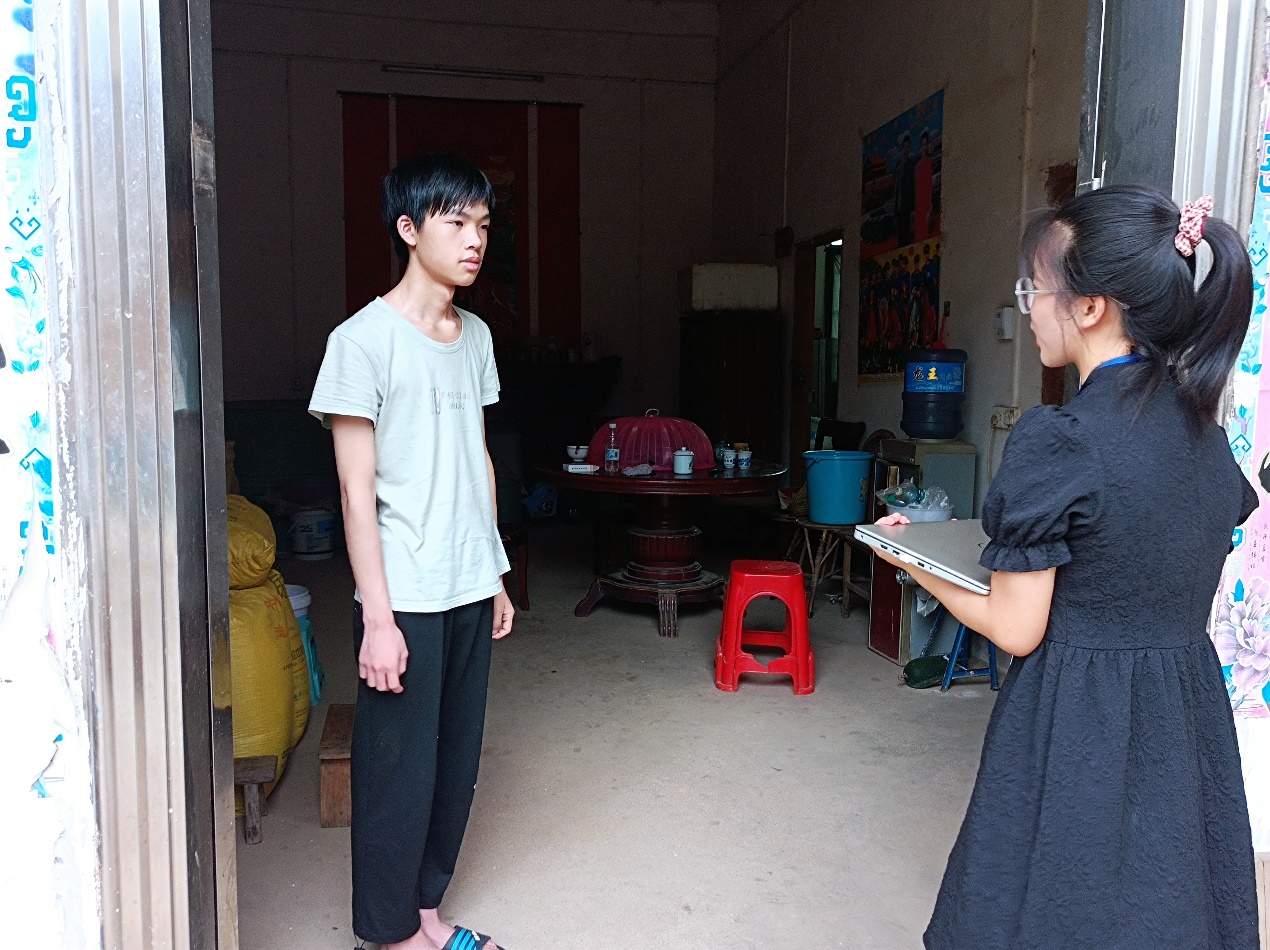为把国家资助政策的温暖带进那些需要帮助的家庭中,让国家和学校的资助政策家喻户晓,深入人心,我决定进行走村入户走访。通过与村委会联系,我得知莲花村的一户人家,家庭兄弟姐妹众多,大姐正在上大学,二姐在读高中,而他本人也步入高中生活,父亲常年外务工,母亲在家打零工来维持生活。