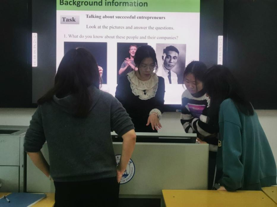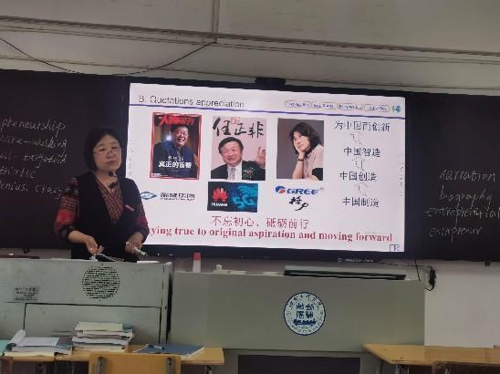 刘景瑜老师就大学英语IV所授单元Unit3 Being entrepreneurial进行磨课,她以课程思政为指导,引导学生树立正确的人生观、价值观,成功观。在Detailed reading讲解中,刘老师结合英语传记类写作要素与步骤,激发学生的学习主动性,帮助学生打下良好的写作基础,为四六级考试做准备。她流利的口语和巧妙的教学设计深得大家的一致好评。