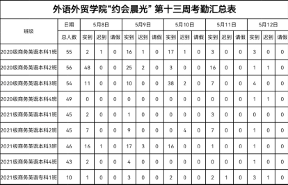 以上就是我院第十三周的卫生及早读出勤的情况。大部分班级表现很好,但还有部分班级需要加强卫生管理,卫生角和门窗的卫生需要引起重视,希望下次能有所改善。
