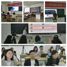 答辩共分为10个小组,每组3名答辩教师及1名秘书,其中由1名高级职称教师担任答辩小组组长。答辩主要分为两个环节,第一个环节是学生通过PPT针对自己的毕业论文进行陈述。在陈述环节,同学们用英文简要概述了论文的研究目的、意义、过程和主要结论。第二个环节是由答辩老师在认真审阅论文的基础上,针对论文选题、研究方法、逻辑结构、理论应用及学术规范等对学生进行了提问、点评和指导,参加答辩的学生基于论文撰写情况,结合本科阶段所学的专业知识对答辩小组提出的问题进行了详细的回答。