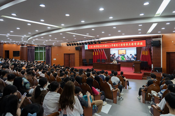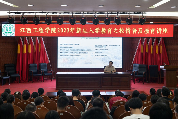 春华秋实,叠翠流金。为进一步增进新生对学校历史和现情的认知,培养新生集体归属感和荣誉感,帮助新生树立远大理想信念、找准正确发展方向,9月21日,语言与传播学院组织全体2023级新生参加入学教育之校情普及讲座,本次讲座由江西工程学院招生处处长谢浓主讲。