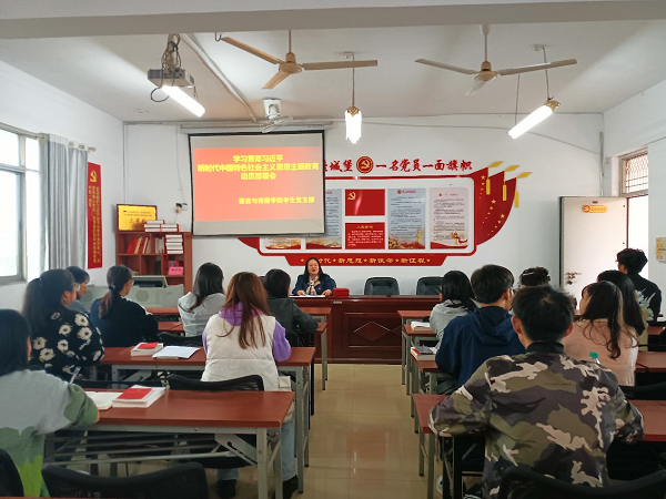 10月12日下午,语言与传播学院在C601召开学习贯彻习近平新时代中国特色社会主义思想主题教育动员部署会。会议由学生党支部书记傅煜平主持,支部全体党员20余人参加了会议。